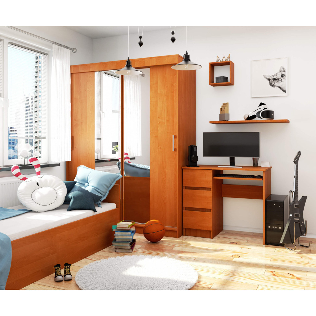 Prezentowane biurko zostało wykonane z wysokiej jakości drewna olchowego, a także z płyty laminowanej odpornej na ścieranie. Przeznaczone jest do samodzielnego montażu, załączona instrukcja w prosty i wyczerpujący sposób tłumaczy, jak je złożyć. Biurko jest niezwykle wygodne w użytkowaniu i zapewnia komfort pracy bądź nauki. Posiada wiele przestrzeni do zagospodarowania tj. trzy szuflady i wysuwaną półkę, na której umieścić można klawiaturę komputera – poruszają się one za sprawą metalowych prowadnic rolkowych, dzięki czemu działają lekko i sprawnie. Fronty szuflad zostały wykonane z płyty laminowanej. Z kolei widoczne krawędzie oklejone są obrzeżem ABS, co zapewnia wysoką odporność na uszkodzenia.
