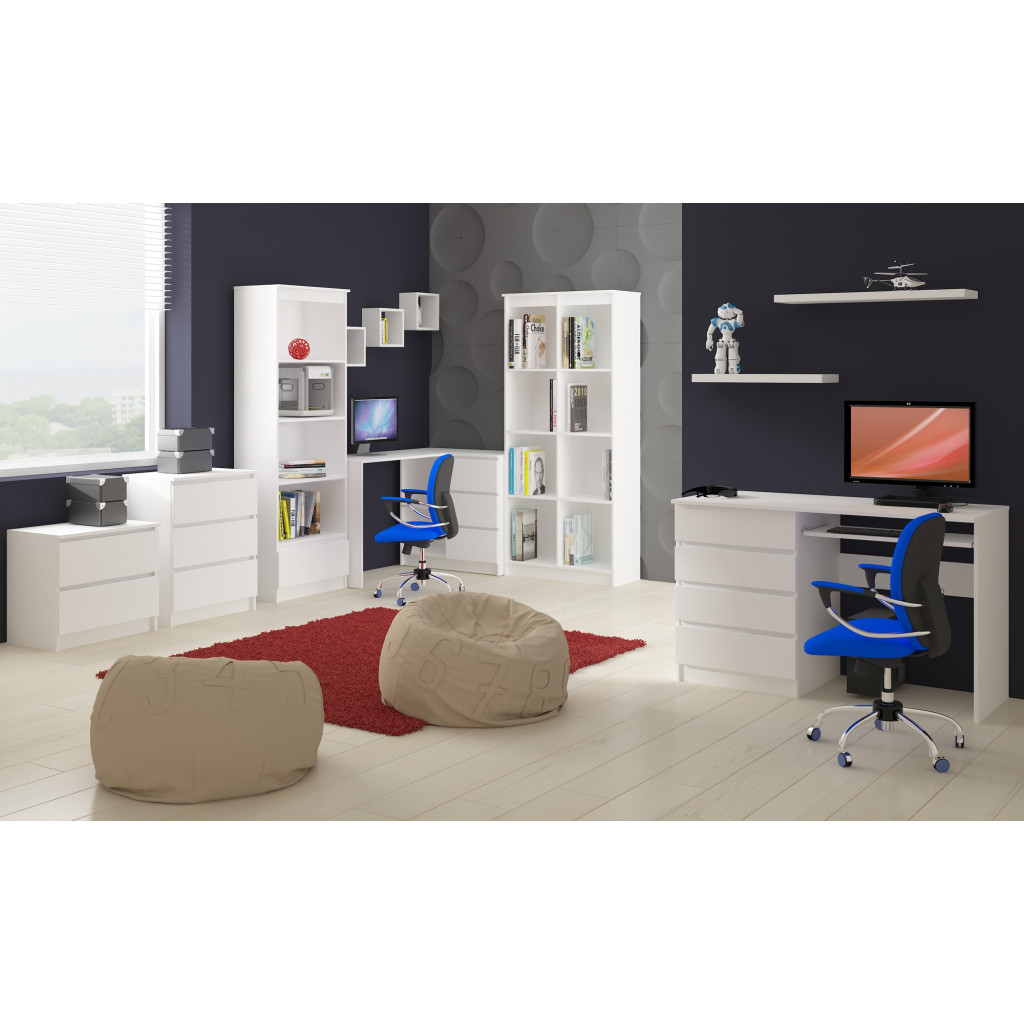 Jesteś graczem albo szukasz wygodnego biurka do pracy? Jeśli odpowiedź jest twierdząca to znaczy, że dobrze trafiłeś. Przedstawione białe biurko komputerowe zostało stworzone z myślą o ludziach, którzy potrzebują odpowiedniego miejsca do pracy, nauki lub rozrywki. Neutralny kolor biały nie tylko jest obecnie bardzo modny, ale też dobrze się wkomponowuje w kolorystykę pokoju. Biurko jest zrobione z płyty laminowanej, która jest odporna na ścieranie. To bardzo ważne w przypadku obecności dzieci. Biurko komputerowe 6 szuflad posiada, co jest rzadkością. To bardzo wygodne rozwiązanie, ponieważ w każdej szufladzie można przechowywać co innego i nie będzie dochodziło do sytuacji, gdzie się wszystko pomiesza. Graczowi, który ma mnóstwo gier to powinno spodobać się najbardziej, ponieważ każda szuflada będzie dotyczyła innej tematyki gier. Wykonanie biurka jest bardzo staranne, a krawędzie widoczne zostały oklejone obrzeżem ABS. To znacznie zwiększa wytrzymałość na różnego rodzaju otarcia czy uszkodzenia.
