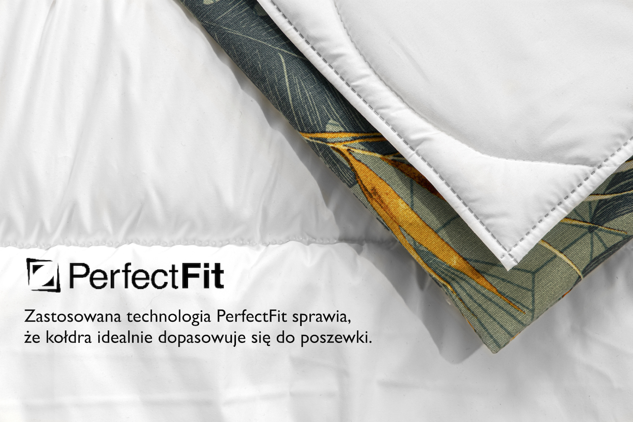 W naszej kołdrze zastosowana jest nowoczesna technologia łączenia i wykończenia. Nazwaliśmy ją PerfectFit, bo pozwala także na wykonanie prostokątnych narożników, które idealnie dopasowują się do poszewki. Pikowanie w fale sprawia, że puszyste włókno silikonowe, którym jest wypełniona, nie przemieszcza się, a kołdra praktycznie zawsze wygląda jak nowa.