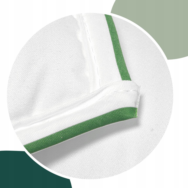 Zielona lamówka dodaje jej wyjątkowej elegancji, a prostokątne wykończenie sprawia, że idealnie dopasowuje się do poszewki.