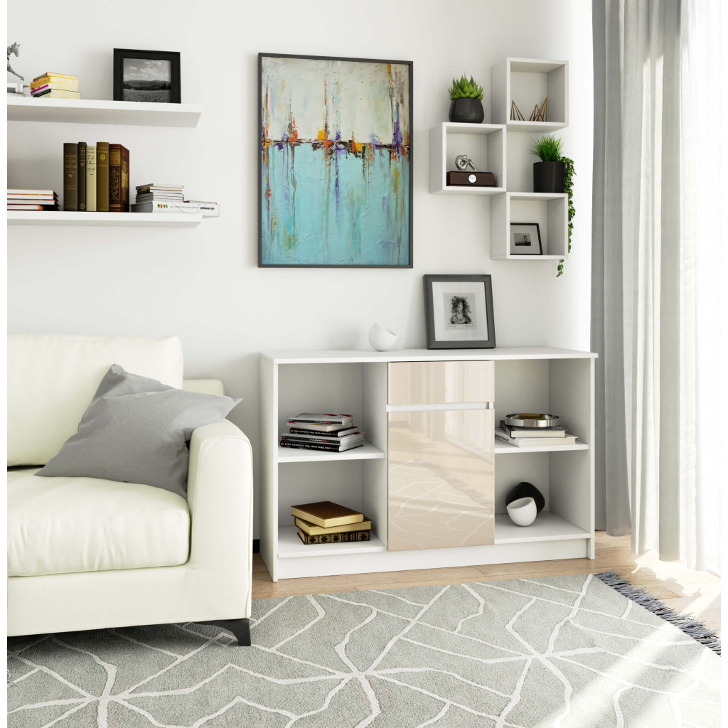 Komoda B-17 120 cm 1 szuflada 1 drzwi biała-cappuccino połysk