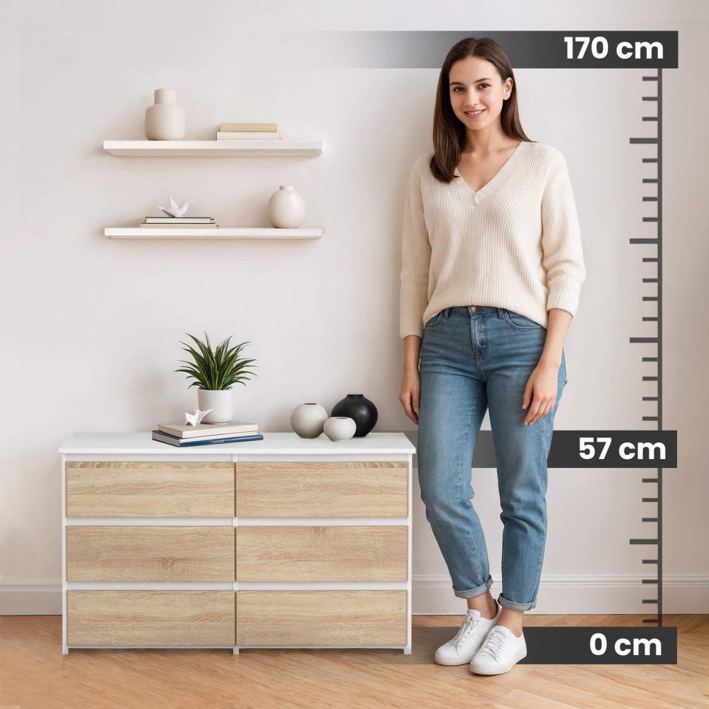 KOMODA CL100 6SZ PK BIAŁA / DĄB SONOMA
