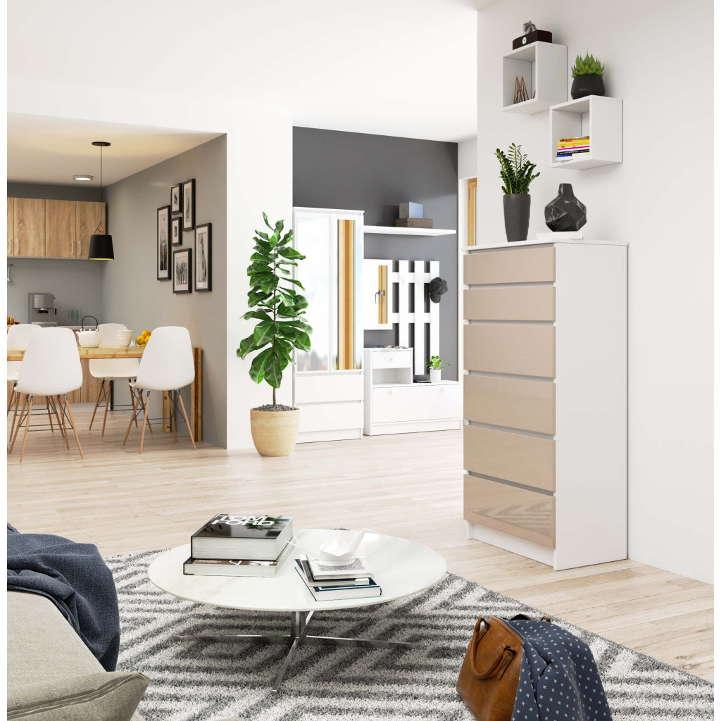 Home Sklep Komoda do salonu K 60 cm 6 szuflad – biała-cappuccino połysk