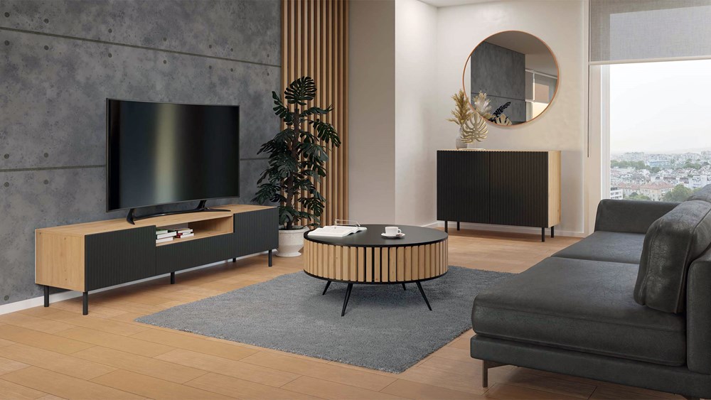 Nowoczesna i stylowa komoda homi to funkcjonalny i pakowny mebel, dzięki któremu wnętrze Twojej sypialni, salonu lub pokoju dziecka nabierze nowego blasku. Bezapelacyjny hit i nowość – ryflowane fronty drzwi, które ułożone są pionowo w sposób imitujący lamele. Elegancja, sznyt i wyjątkowy szyk!