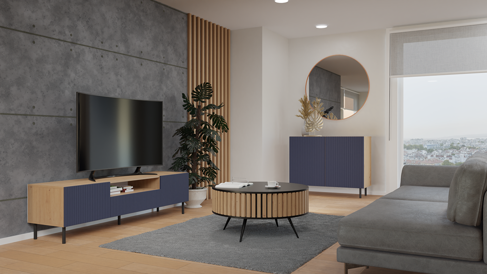 Nowoczesna i stylowa komoda homi to funkcjonalny i pakowny mebel, dzięki któremu wnętrze Twojej sypialni, salonu lub pokoju dziecka nabierze nowego blasku. Bezapelacyjny hit i nowość – ryflowane fronty drzwi, które ułożone są pionowo w sposób imitujący lamele. Elegancja, sznyt i wyjątkowy szyk!