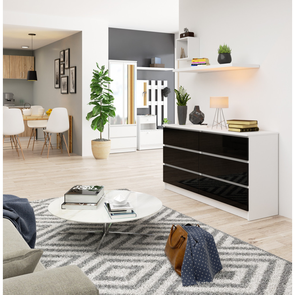 Home Sklep KOMODA K 140 cm 6 SZUFLAD AKRYL CZARNY WYSOKI POŁYSK