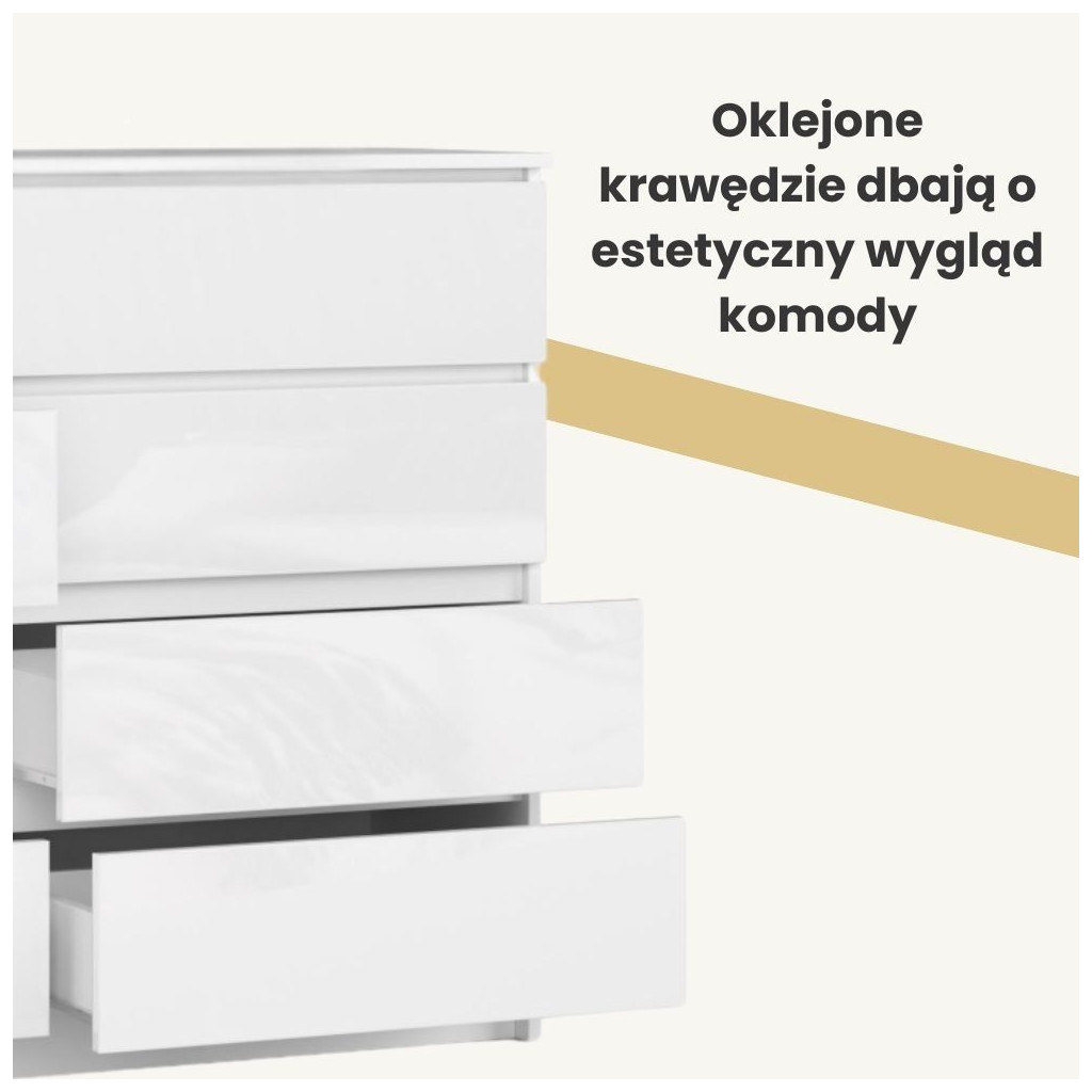 • Korpus komody wykonany z płyty laminowanej biały mat 16mm odpornej na ścieranie