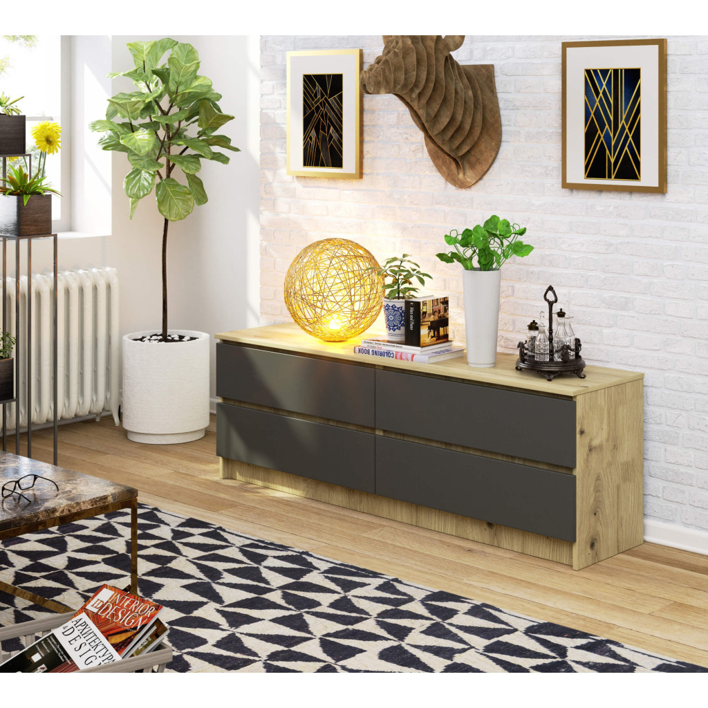Komoda AKORD K160 Dąb Artisan 160 cm 4 szuflady kolor Grafit Szary mat 160x40x55 cm
