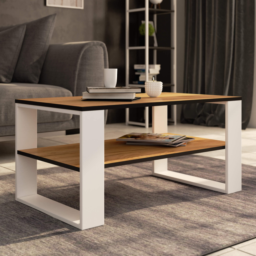 Meble AKORD - Stolik kawowy ALEX Dąb Craft 92 cm kolor nóg Biały mat 92x53x45 cm - Producent mebli - tanie meble
