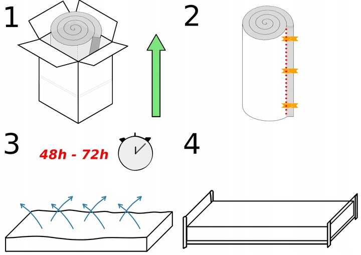 1. Po otrzymaniu materaca należy delikatnie wyciągnąć rolkę z zewnętrznego kartonu zabezpieczającego.