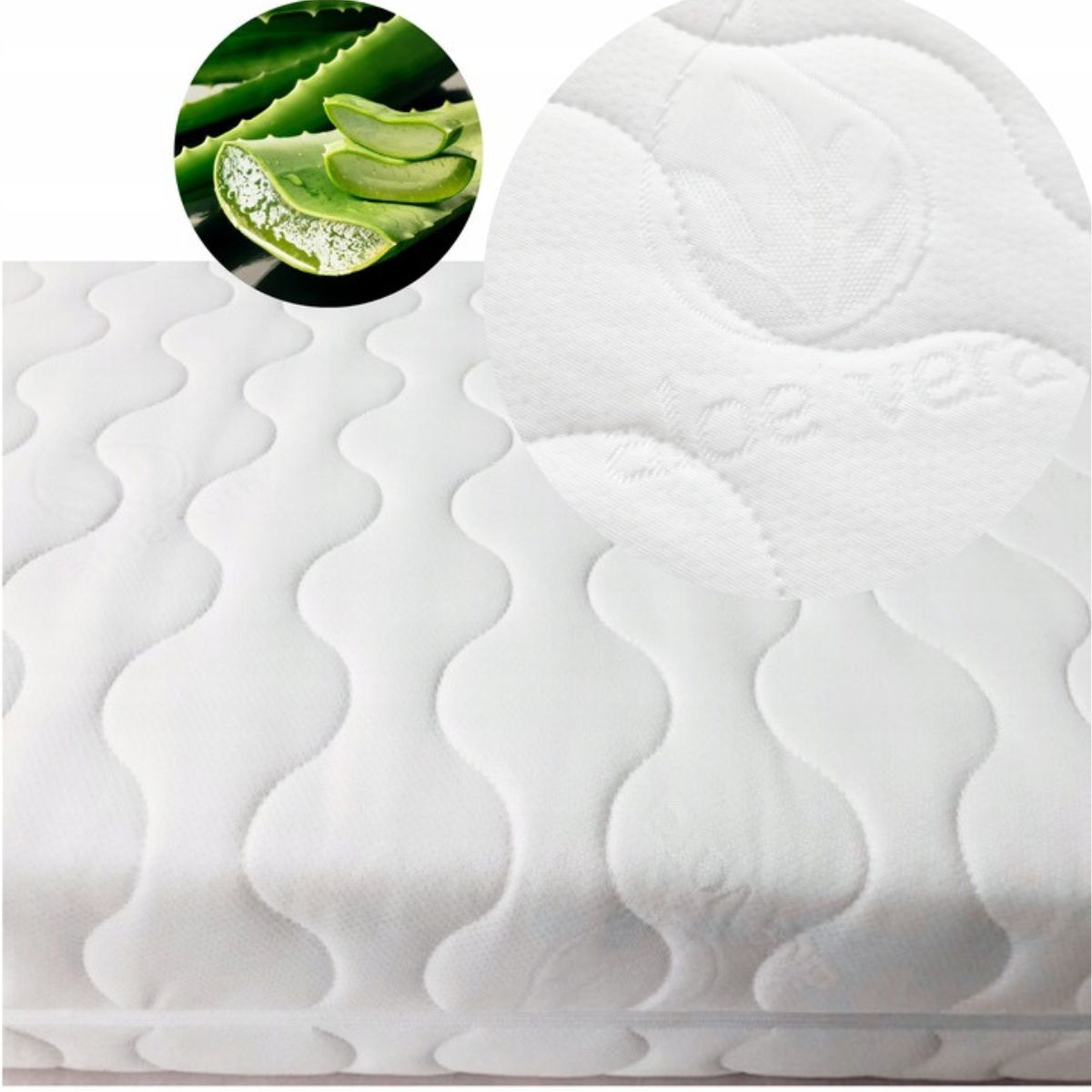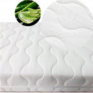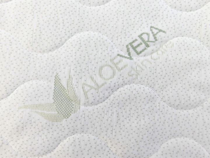 Pokrowiec materacowy „Aloe Vera” wykonany z elastycznej, rozciągliwej tkaniny materacowej wysokiej jakości o dużej gramaturze (aż 200 g/m2). Materiał posiada motywy z nazwą tkaniny oraz, ożywiające i mające walory estetyczne, deseń z liśćmi aloesu. We włóknach tego pokrowca zastosowano apreturę z aloesu, która pozytywnie wpływa na higienę snu. Całość została przepikowana z użyciem specjalnego włókna klimatyzującego.