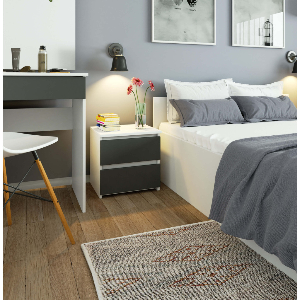 Szafka nocna CL2 40 cm 2 szuflady – biała-grafit szary