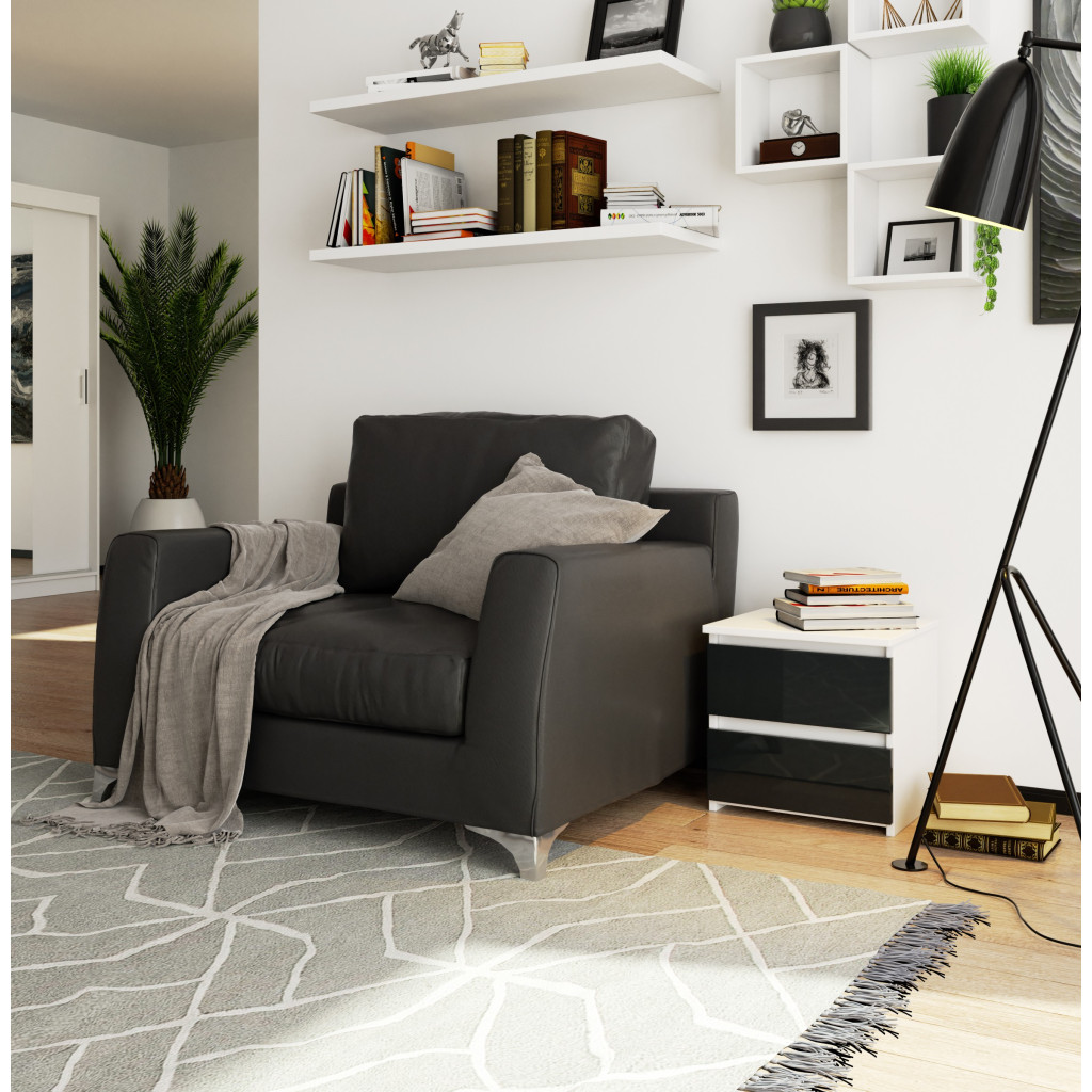 Szafka nocna CL2 40 cm grafit akryl to modny mebel, który znajdziesz w ofercie naszego sklepie. Szafka wykonana została z odpornej na ścieranie płyty laminowane. Dzięki temu będziesz mieć gwarancje, że ten widowiskowy mebel będzie służył Ci przez długie lata. Cenną informacją jest również fakt, że fronty w szafce nocnej wykonane zostały z płyty grafit połysk.