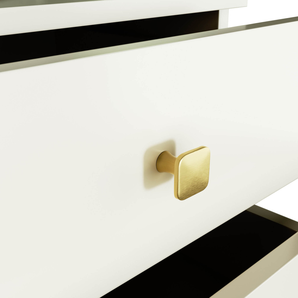 Szafka nocna kaszmirowa MOBI K-03 to mały mebel o wielkim charakterze. 3 szuflady oferują możliwość wygodnego przechowywania podręcznych drobiazgów, a metalowe uchwyty w kolorze złotym dodają całości szykownej elegancji. Szafka nocna kaszmirowa świetnie odnajdzie się w aranżacjach w stylu quiet luxury, glamour czy New York. Do szafki dołączony jest kątownik oraz wkręty umożliwiające przymocowanie mebla do ściany.