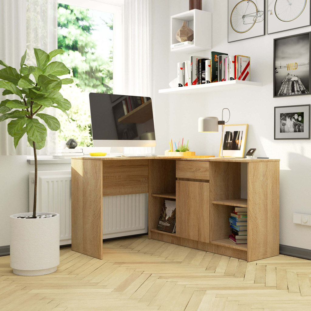 Zestaw B-17 to wyjątkowo przemyślany mebel, który łączy w sobie funkcjonalność komputerowego biurka narożnego i komody. Takie rozwiązanie pozwala na maksymalne wykorzystanie dostępnej przestrzeni przy zachowaniu wygody użytkowania i estetycznego wyglądu mebla. W razie potrzeby elementy można rozłączyć, a także zmienić ich konfigurację na lewo- lub prawostronną. Dzięki efektownemu designowi, modnemu kolorowi dąb sonoma oraz dużej pojemności zestaw doskonale sprawdzi się zarówno w pomieszczeniach biurowych, jak i w domu.